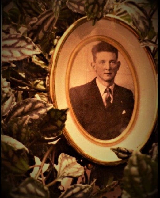 I remember having this just inside the door by the potted plant in Bray so that every time I opened the door I would be greeted by my Da before he knew me...or had made me. "Hiiya Da!" I would always say to the framed phoot. And the framed photo would always without fail answer back "Howya Dónall son!"